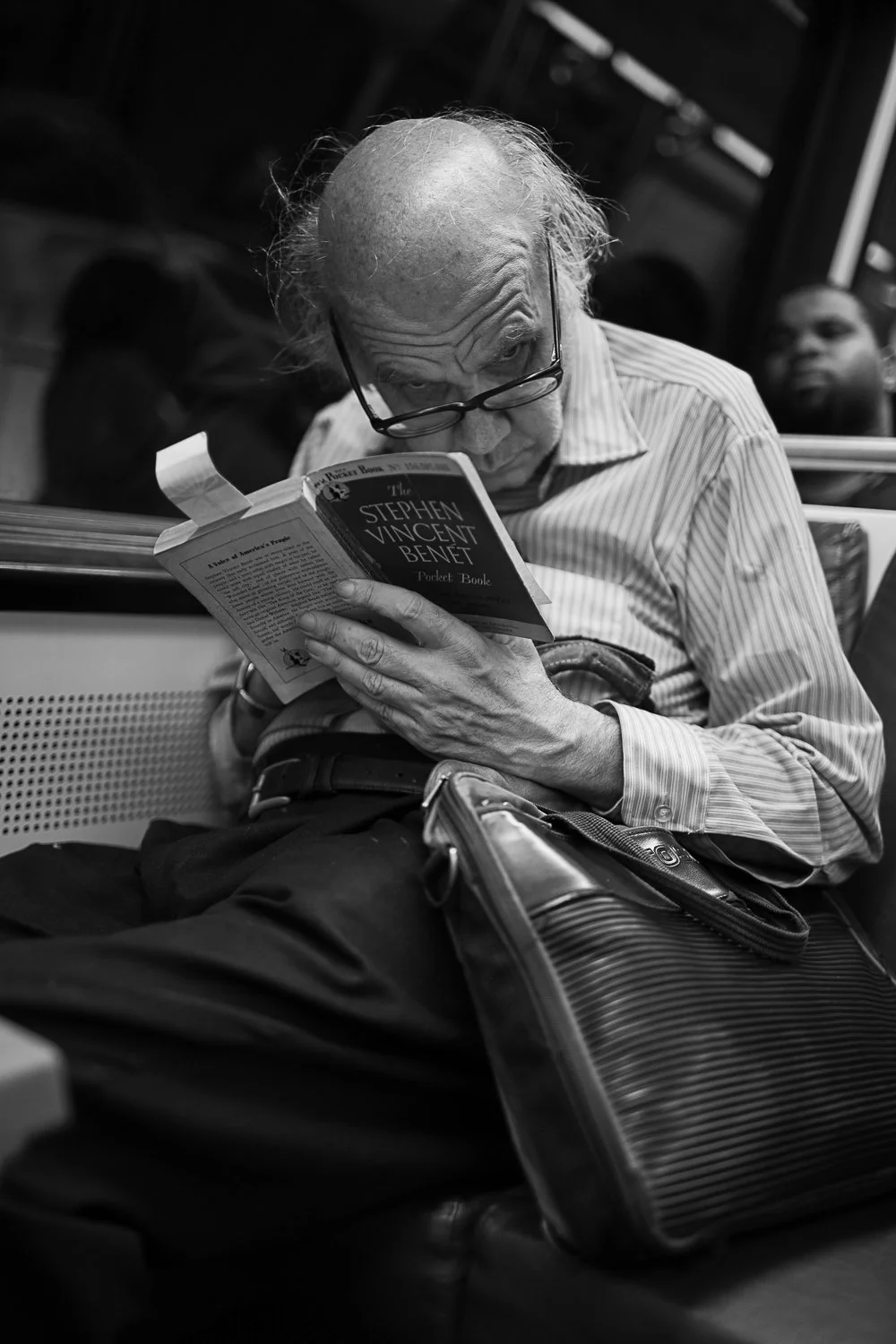 Once I had my camera, I carried it openly on my commute, usually with a 28mm or 50mm lens and a wide open aperture. I wanted to capture moments that hinted at stories, that invited the viewer to imagine a character, what led to a scene, or what happened next. Most people were unaware (I got pretty good at stealth shooting, although I never had a camera that didn’t give itself away with a shutter click), others ignored me, and a few were openly annoyed.