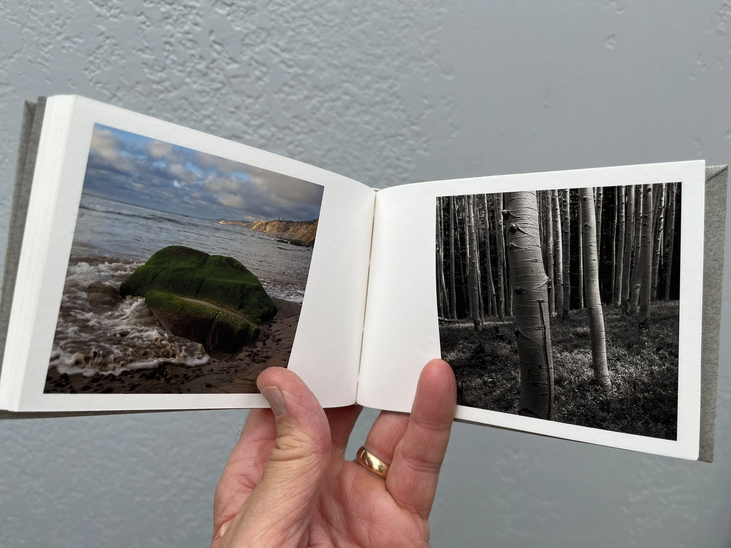 Here’s the center spread, two versions of the same seascape near Encinitas, CA. These were the first two I decided to include, and I worked my way toward the front and back from here. I also had in mind how to begin and end, since these images would stand alone on the first and last pages.