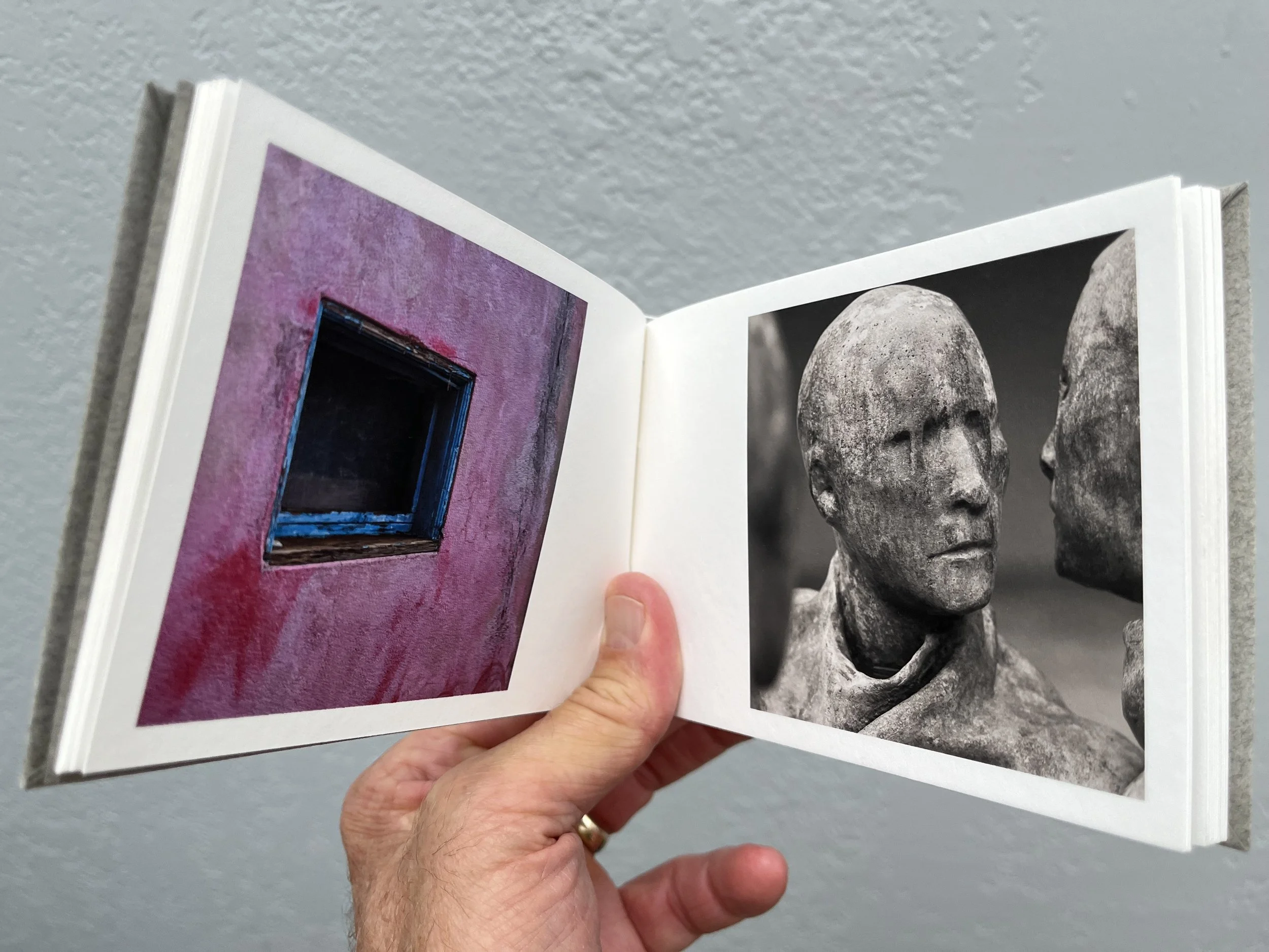 First, what I liked at first and still like: the selection of square format photos. I decided on an equal number of B&W and color photos and that each color photo would face its B&W complement.
